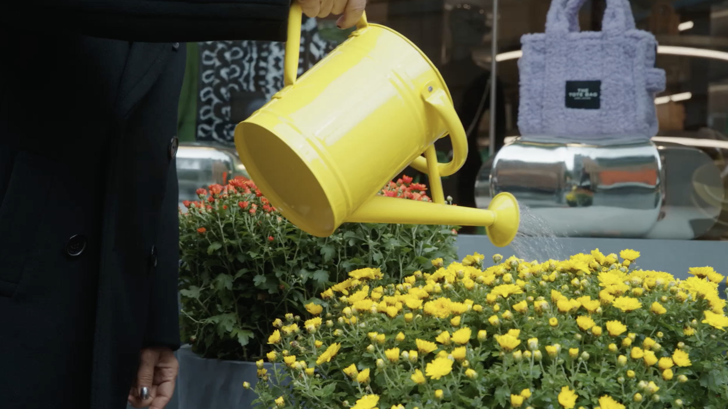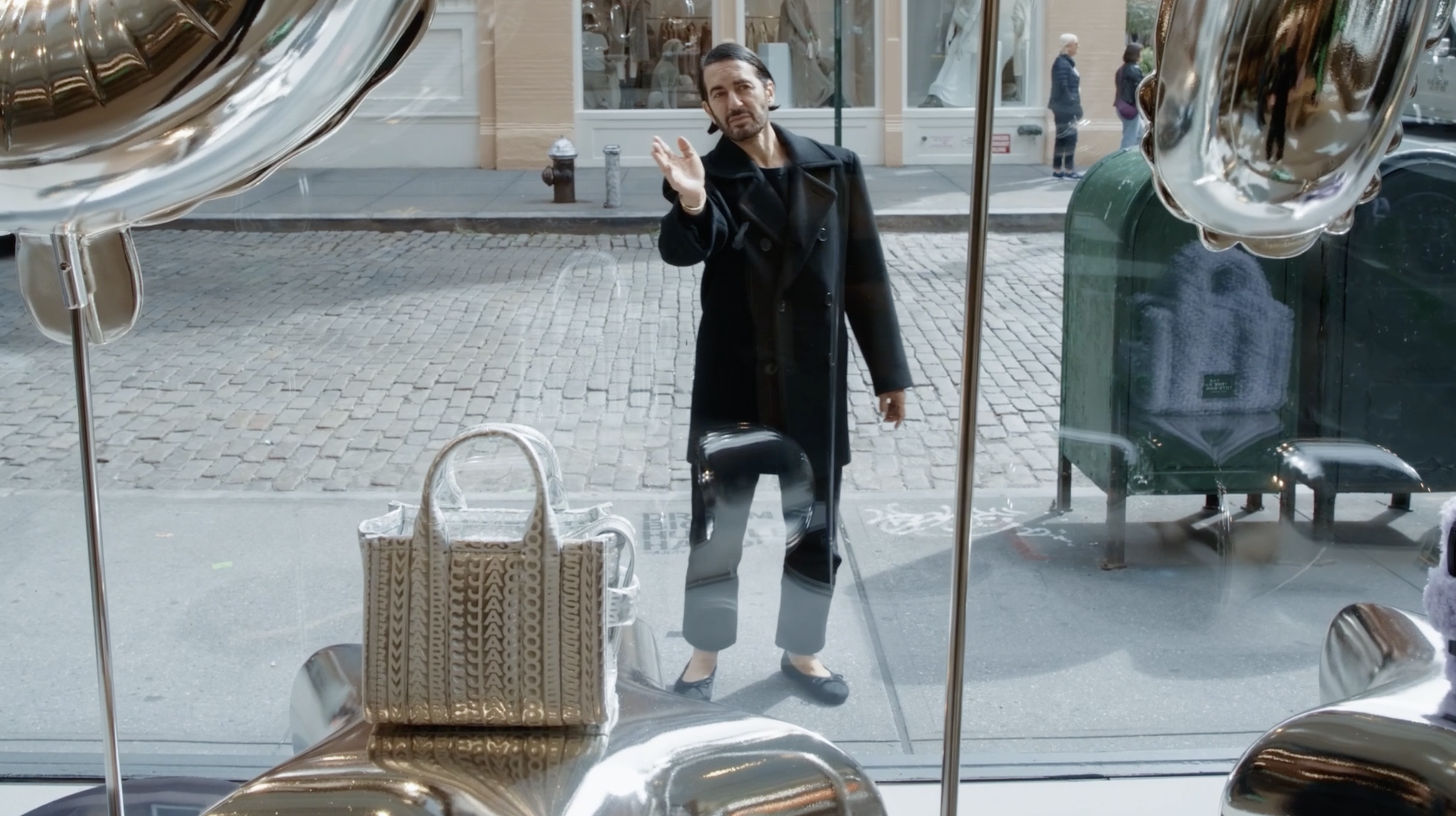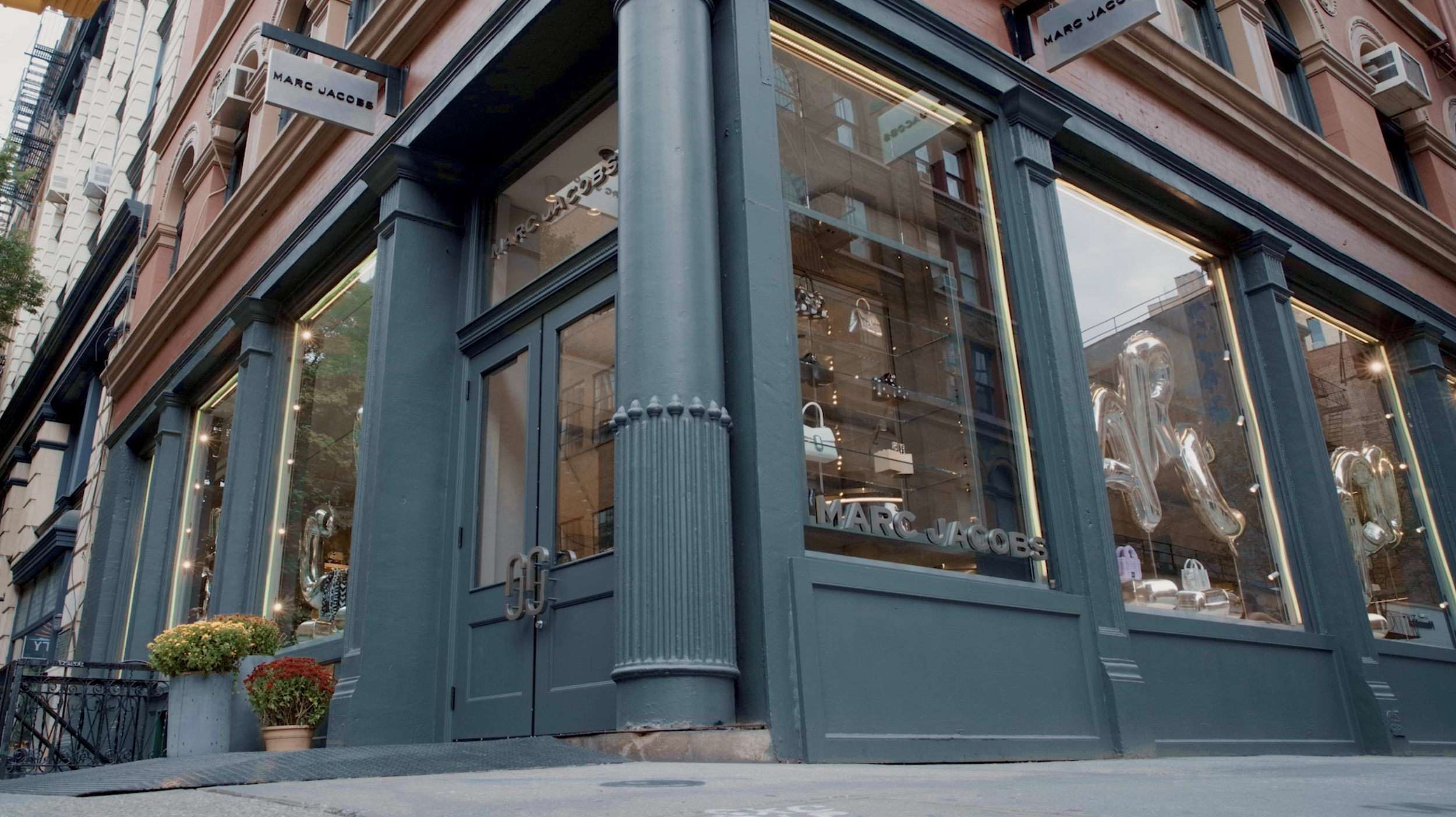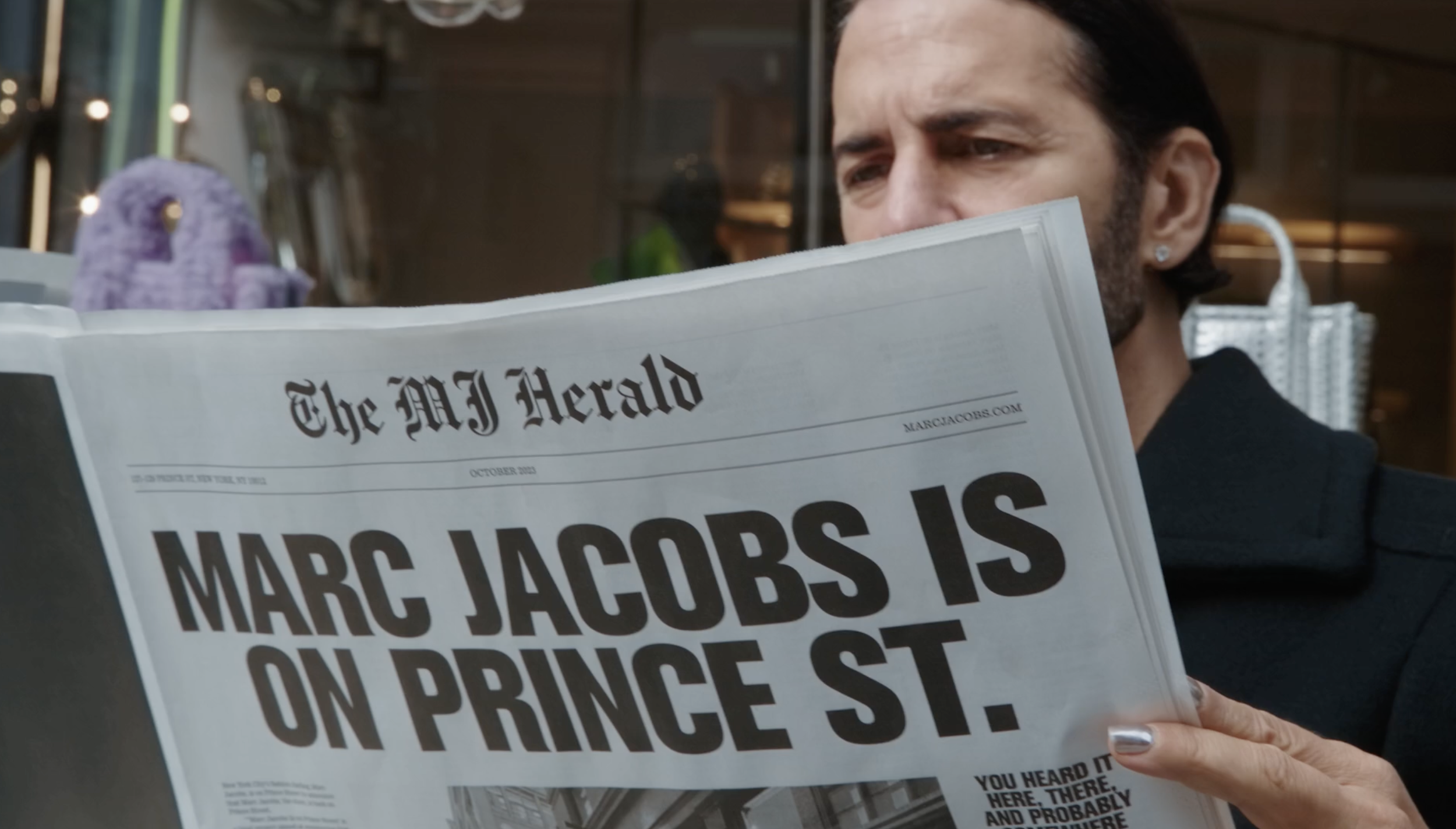 So we turned the store into the stage. Six mini platforms framed the storefront, turning Prince Street into a live set where passers-by could catch glimpses of Marc Jacobs just outside Marc Jacobs. The designer himself became part of the display. The reopening wasn’t announced—it was spotted.